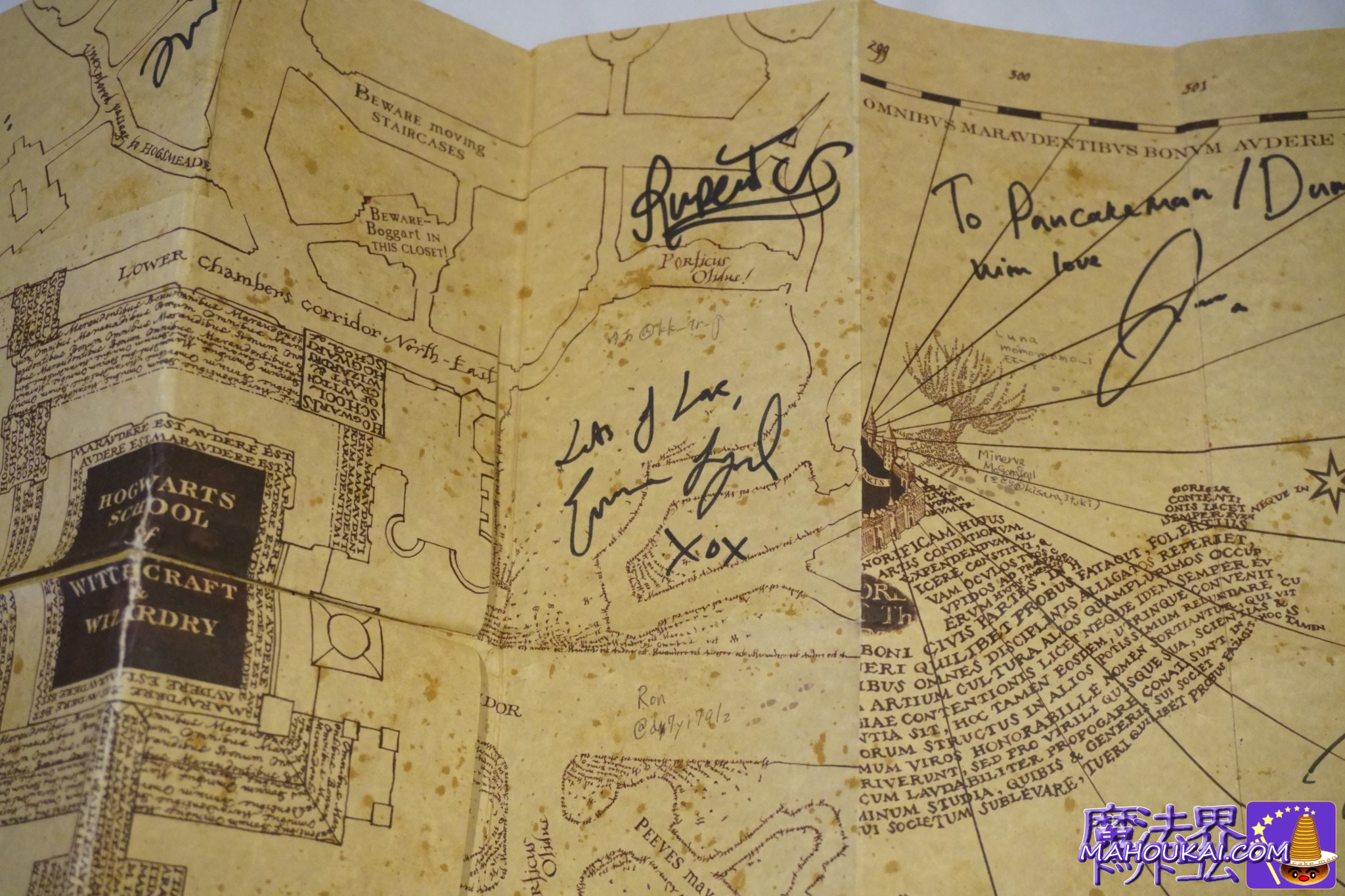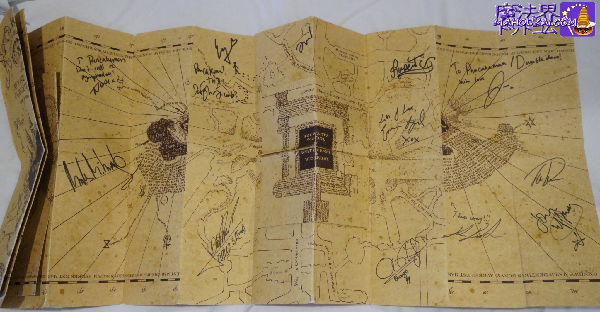 太いマジックの文字がハリポタ俳優や関係者のサインです。左の折りたたみ部にもサインがあります。