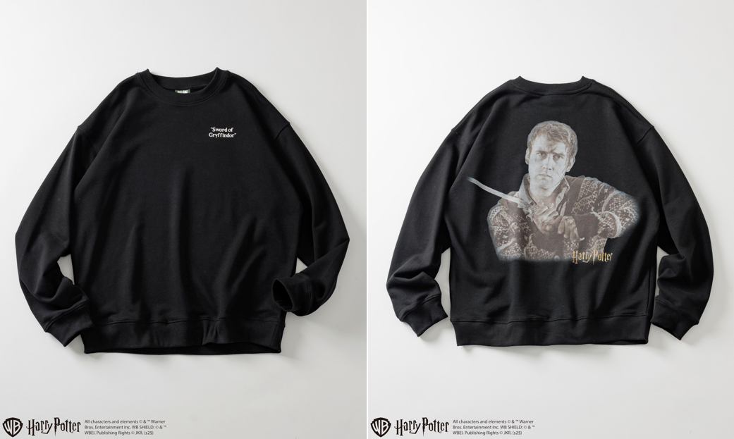 「セブルス・スネイプ」や「ネビル・ロングボトム」、「ディメンター」など、個性的なキャラクターの象徴的なシーンを彷彿とさせるデザインをピックアップ。またスウェットにはキャラクター単体を大きくフィーチャーし、古着のようなビックプリントを施すことでファッションアイテムとしての完成度を高めた。