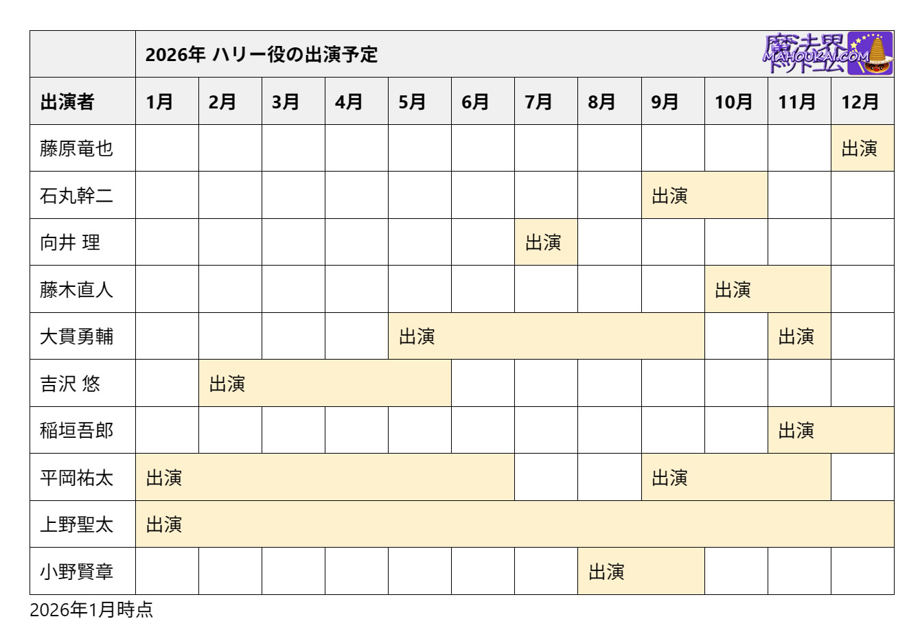 | 2026年 ハリー役の出演予定 | ||||||||||||
