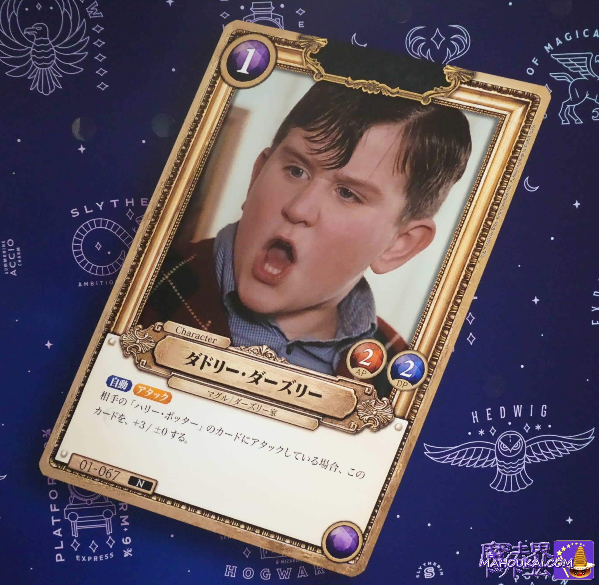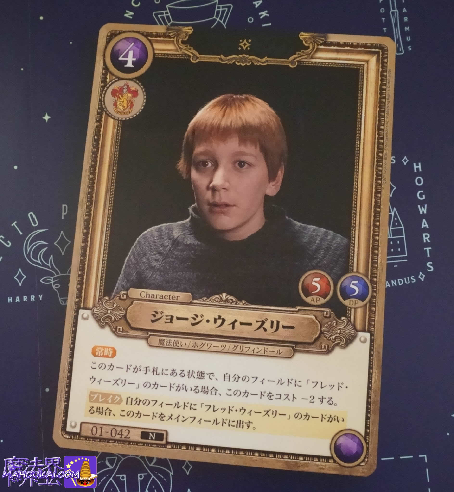 カードには登場人物の名称、人属性や所属組織、カードの特性(常時・ブレイク)APやDPなどが記載されている。フレッド・ウィーズリーの場合「ジョージ・ウィーズリー」のカードと一緒の場合にメリットがある説明がされている。