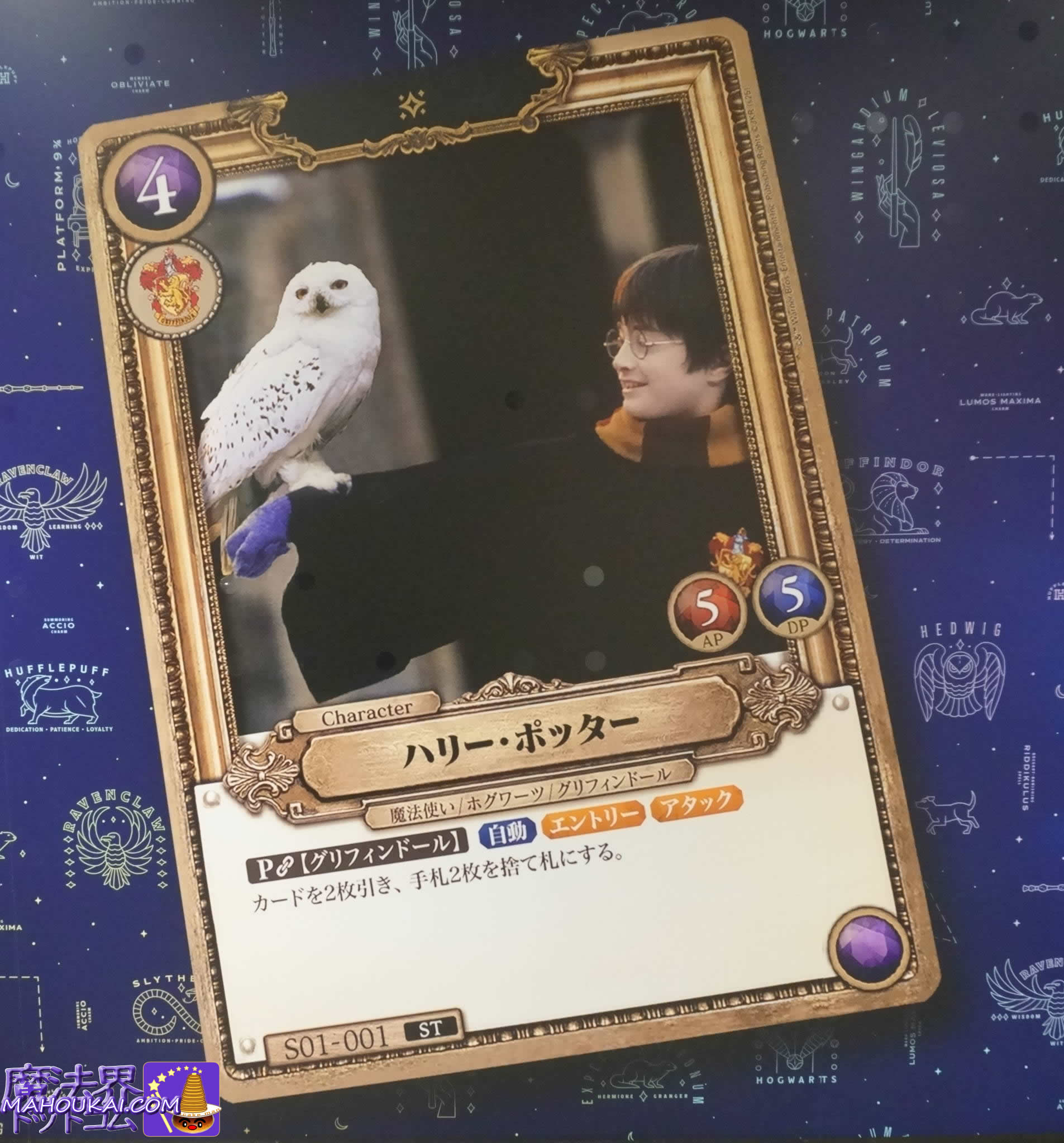 このハリーのカードはヘドウィグと一緒に写っている写真です。もちろん所属寮はグリフィンドールです。