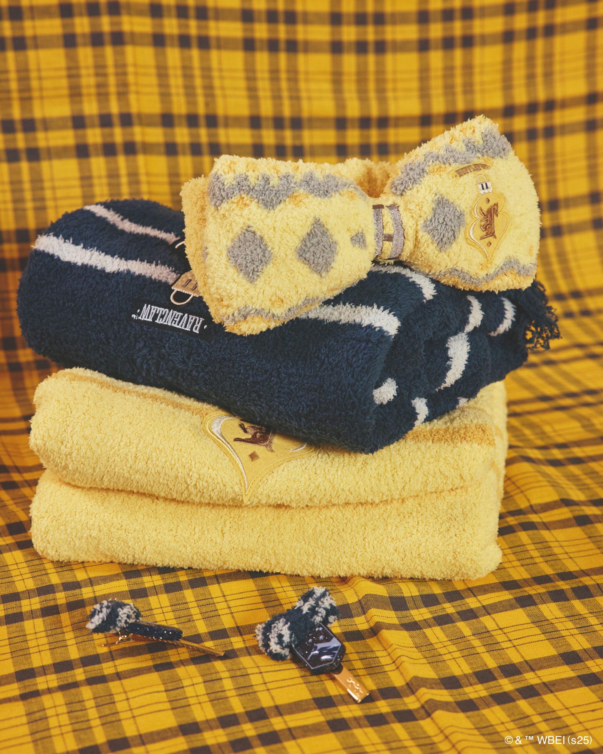 各寮のシンボルをワッペンが入った、ウェアと同様のジャガード柄入りヘアバンド。キャッチーなリボン型で、結び目の部分には「Harry Potter」のイニシャルである「H」の刺繍を入れました。