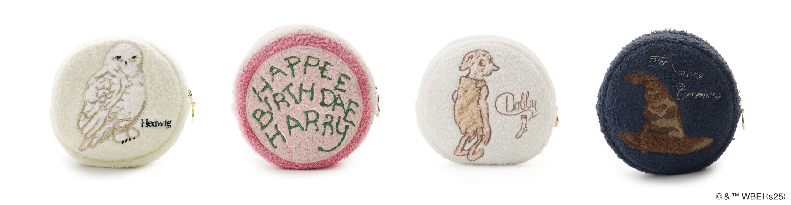 ハリーの大切な相棒・ヘドウィグ(OWHT)や、ハグリッドがハリーに贈ったバースデーケーキ(PNK)、屋敷しもべの妖精・ドビー(LBLU)、組分け帽子(NVY)の全4種展開。