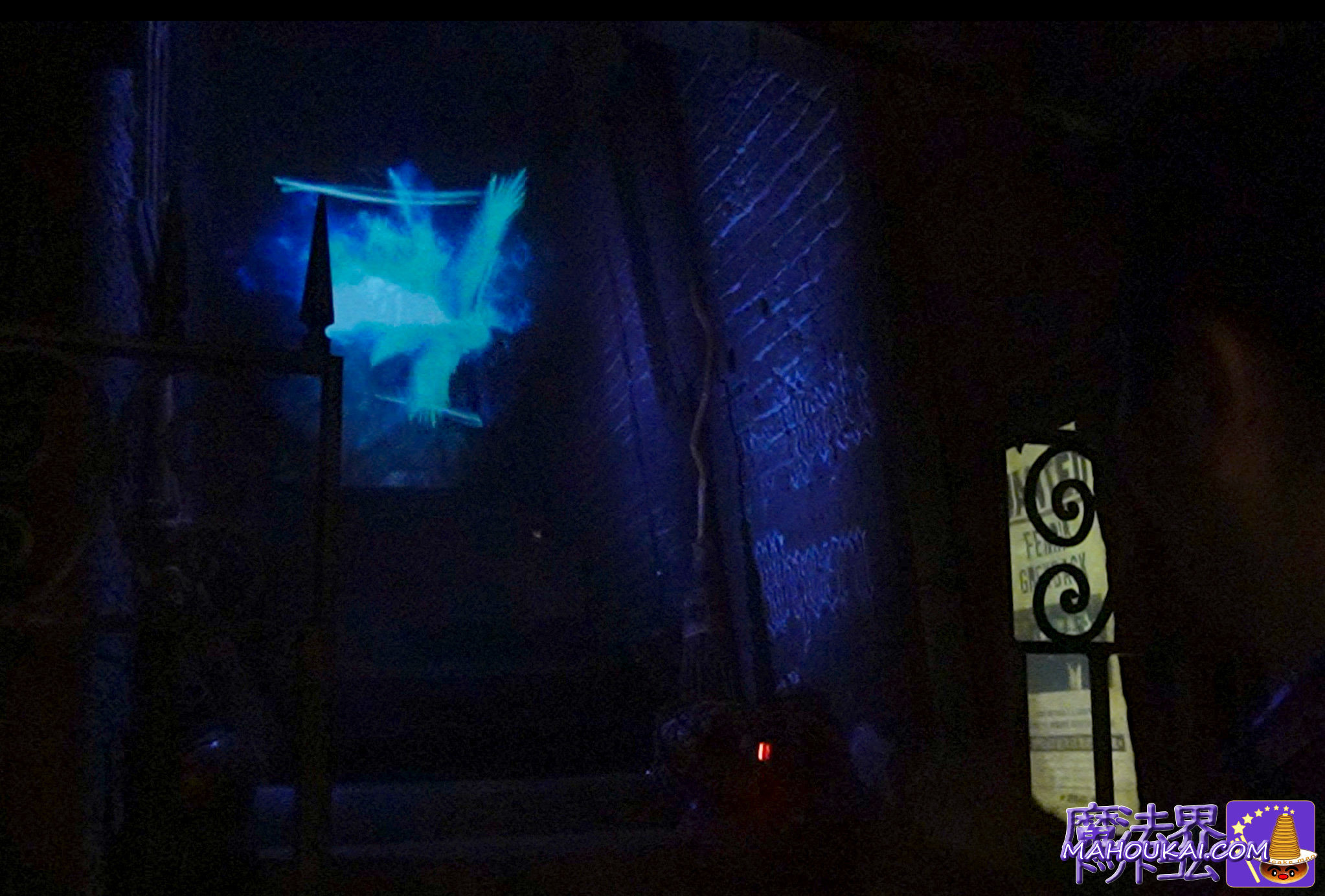 守護霊を呼び出す呪文「エクスペクト・パトローナム」が成功すると、自分自身の守護霊を呼び出せます。私パンケーキマンの守護霊は不死鳥です。画面のインタラクティブワンドが振動し杖先が光ると呪文が成功した証拠です。