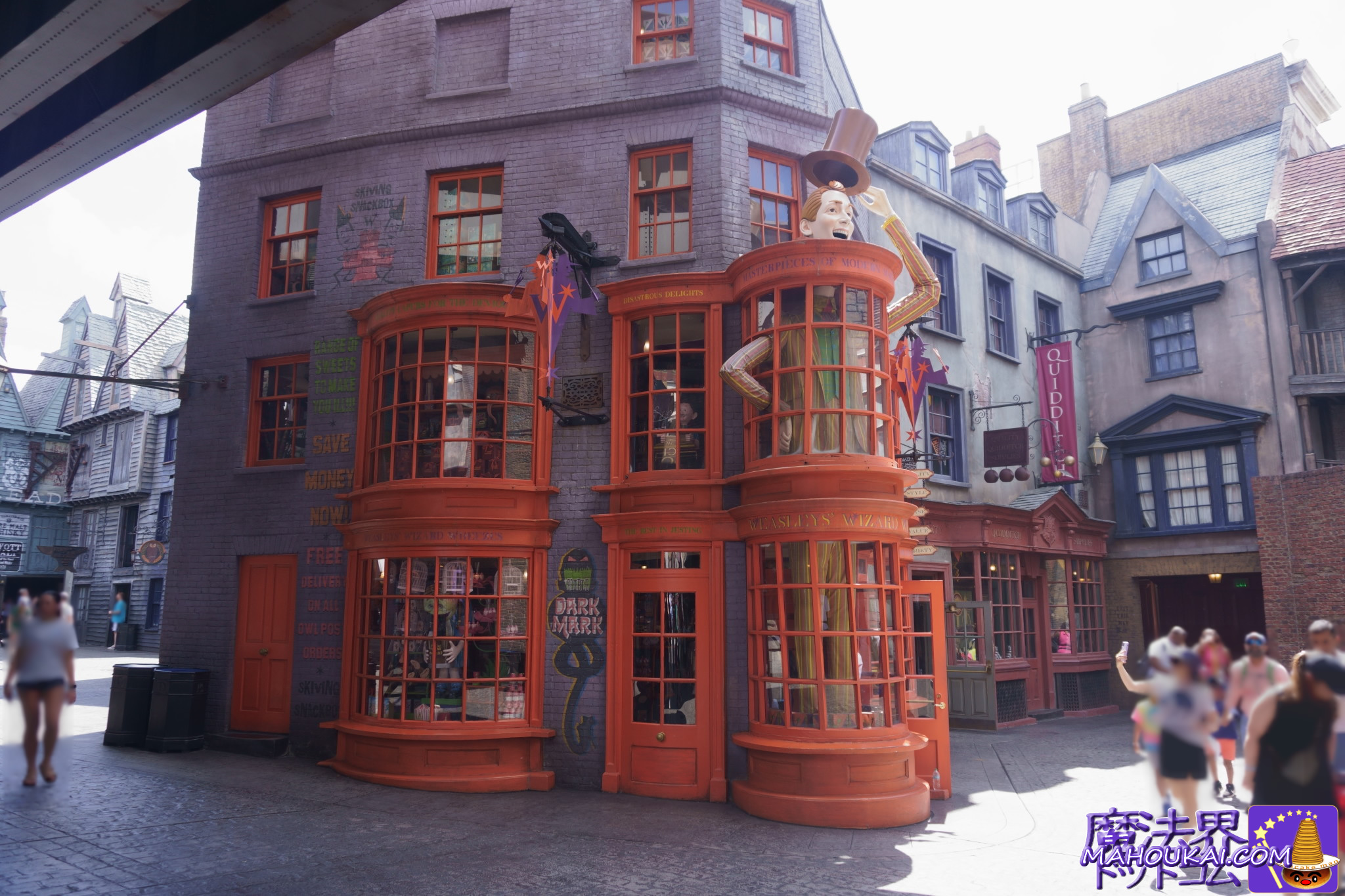 アメリカのハリー・ポッターエリア(ユニバーサル・スタジオ・フロリダ)にあるダイアゴン横丁の悪戯グッズショップ「ウィーズリー・ウィザード・ウィーズ」を紹介します。